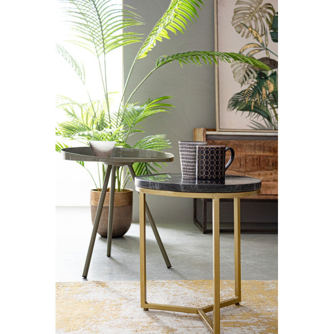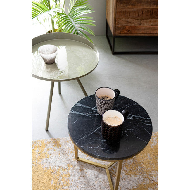 STRUTTURA IN ACCIAIO CON VERNICIATURA A BASE ACRILICA. PIANO IN MARMO. L'OPACITA' DEL MARMO, ESSENDO NATURALE E PRIVO DI FINITURA FINALE, CAMBIA DA PEZZO A PEZZO. EVENTUALI ALONI SONO INTRINSECI ALLA NATURA DEL MATERIALE E NON VANNO CONSIDERATI COME DIFETTI.