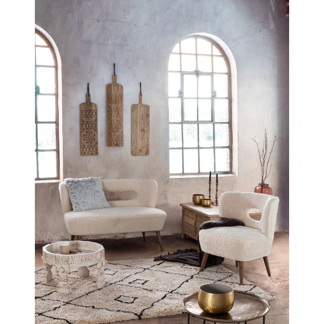 LEGNO DI MANGO CON DECORAZIONI INTARSIATE. FINITURA A CERA CON EFFETTO ANTICATO.