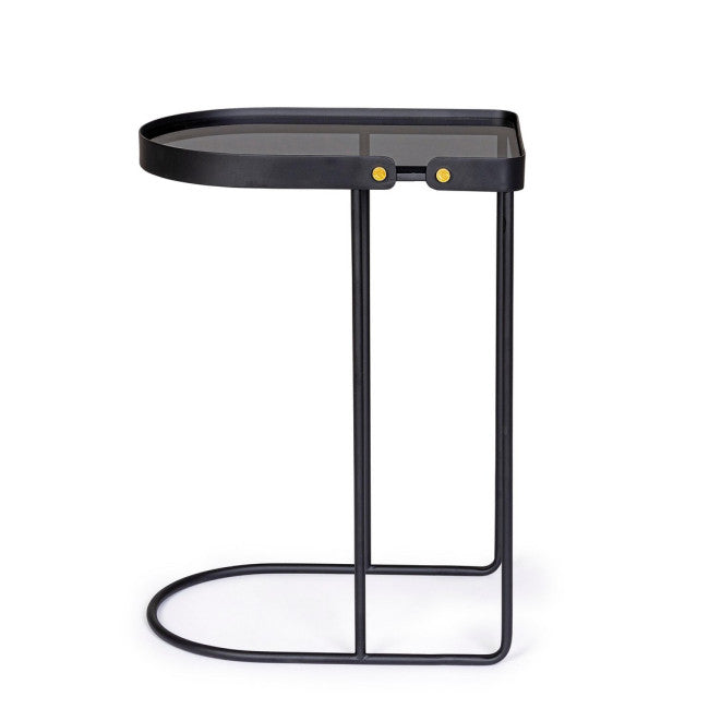 STRUTTURA IN ACCIAIO, VERNICIATA A POLVERE EPOSSIDICA. PIANO IN VETRO TEMPERATO.