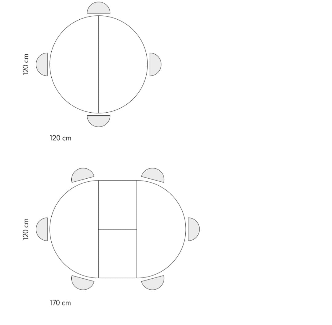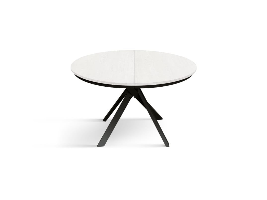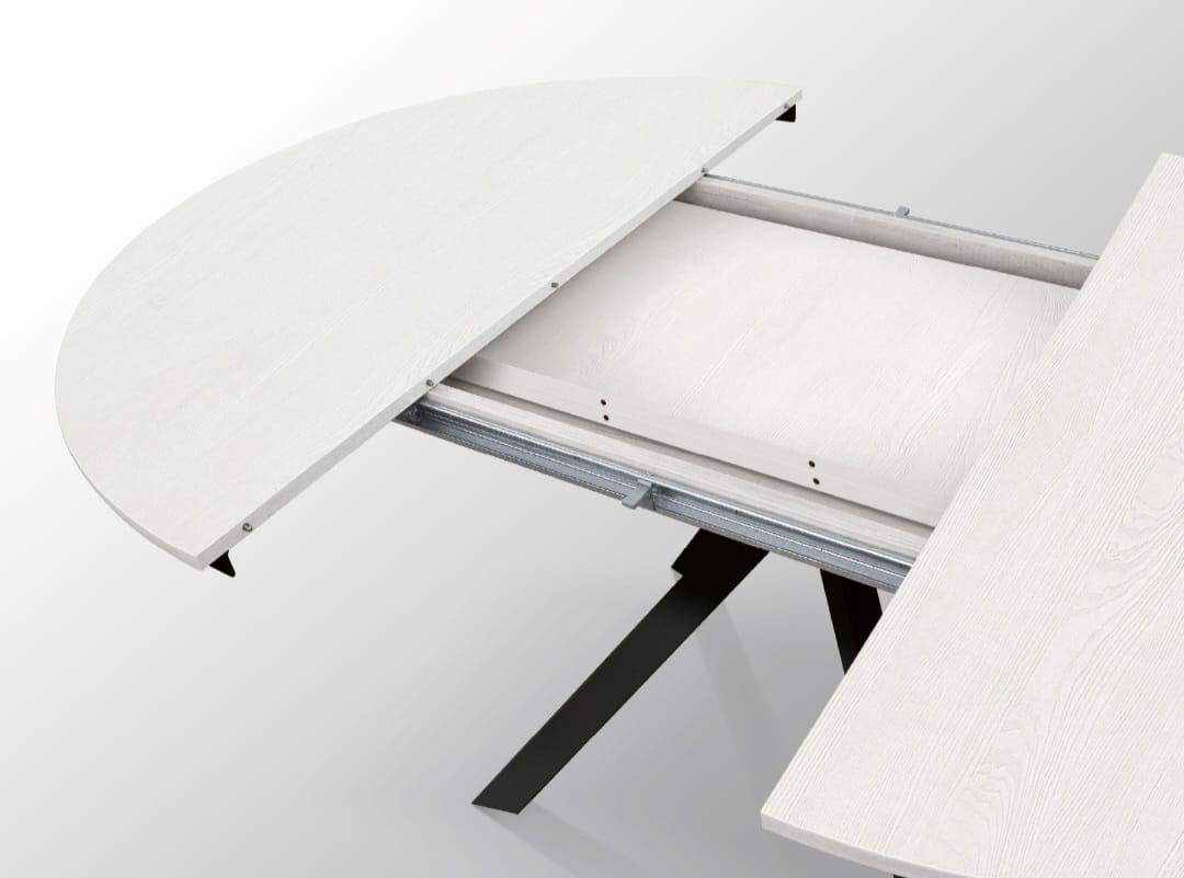 Tavolo allungabile con base metallo colore nero, piano rotondo in nobilitato finitura bianco frassinato , 1 allunga cm 50.