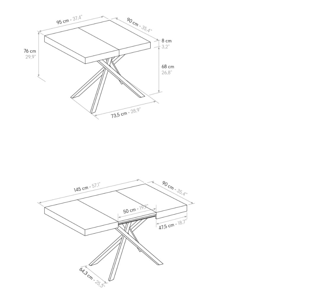 Misura aperto cm L 145 P 90 H 75.5
