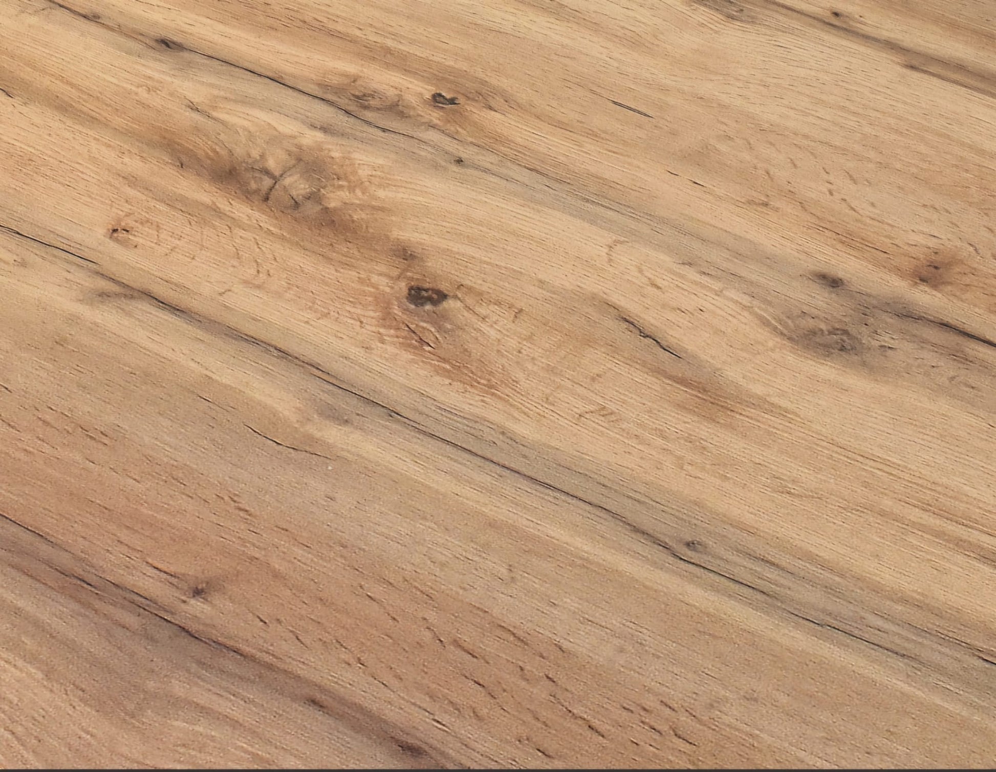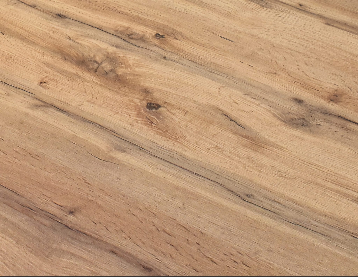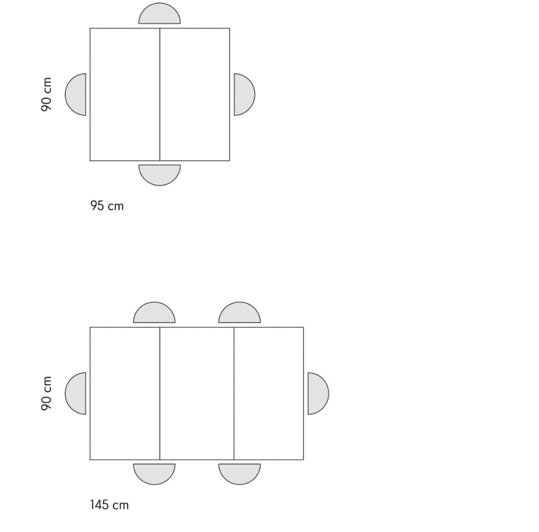 Tavolo allungabile con base in metallo colore nero, piano in nobilitato finitura rovere rustico, 1 allunga cm 50. Misura chiuso cm L 95 P 90 H 75.5 misure aperto cm L 145 P 90 H 75.5