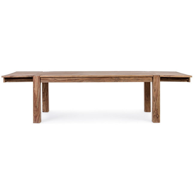 LEGNO SHEESHAM. FINITURA NATURALE. 2 PROLUNGHE INTEGRATE (APERTURA A FARFALLA) DA 50CM. GAMBE DA ASSEMBLARE.
