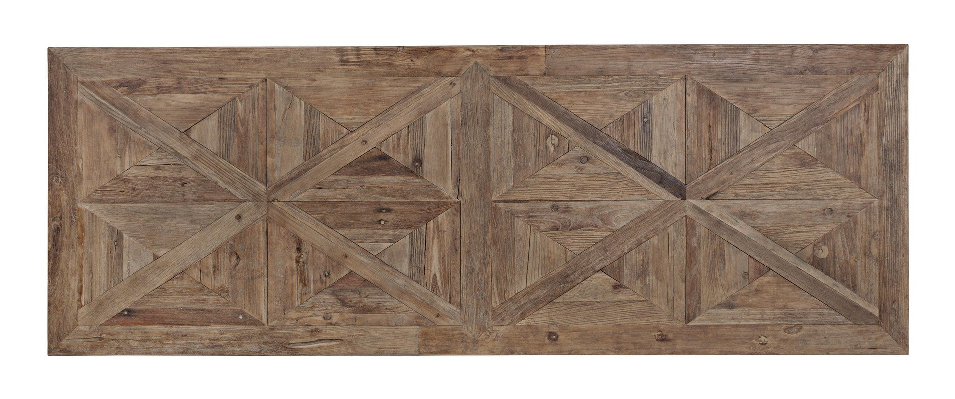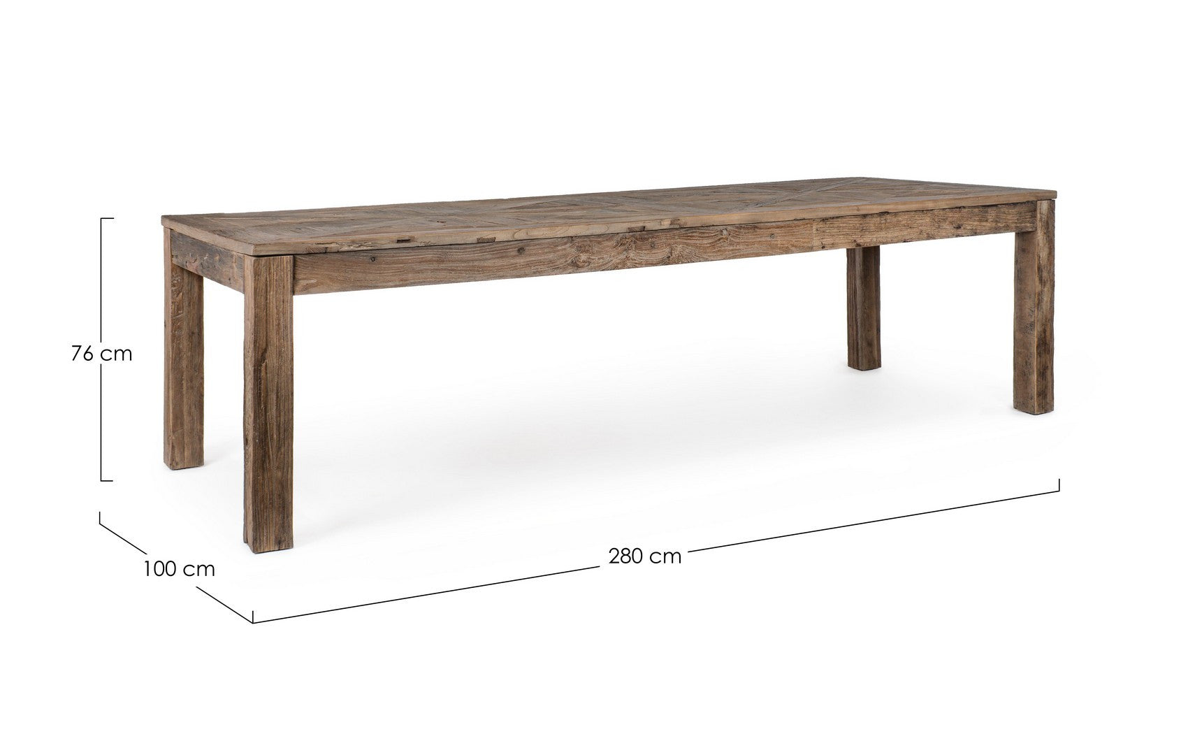 LEGNO DI OLMO RICICLATO, PIANO CON LAVORAZIONE ANTICATA A PARQUET. FINITURA A BASE DI NITROCELLULOSA. GAMBE DA ASSEMBLARE.