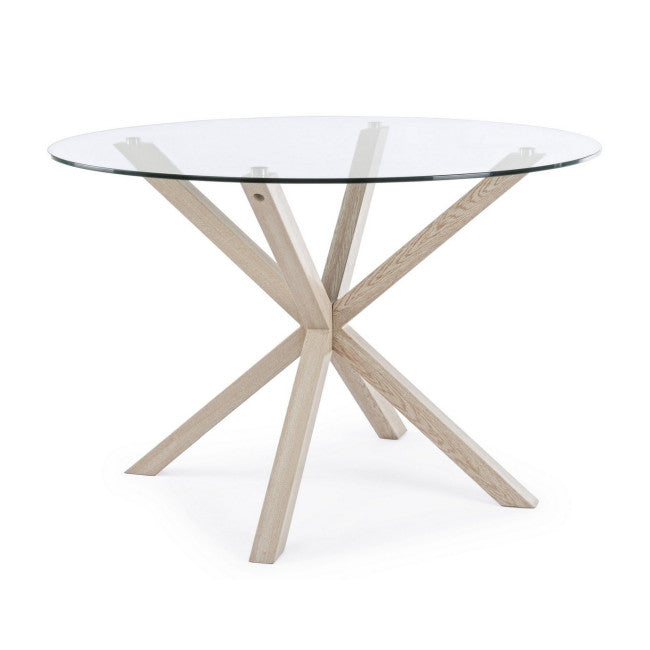 GAMBE IN ACCIAIO FINITURA EFFETTO LEGNO NATURALE. PIANO IN VETRO TEMPERATO SPESSORE 10MM. GAMBE DA ASSEMBLARE