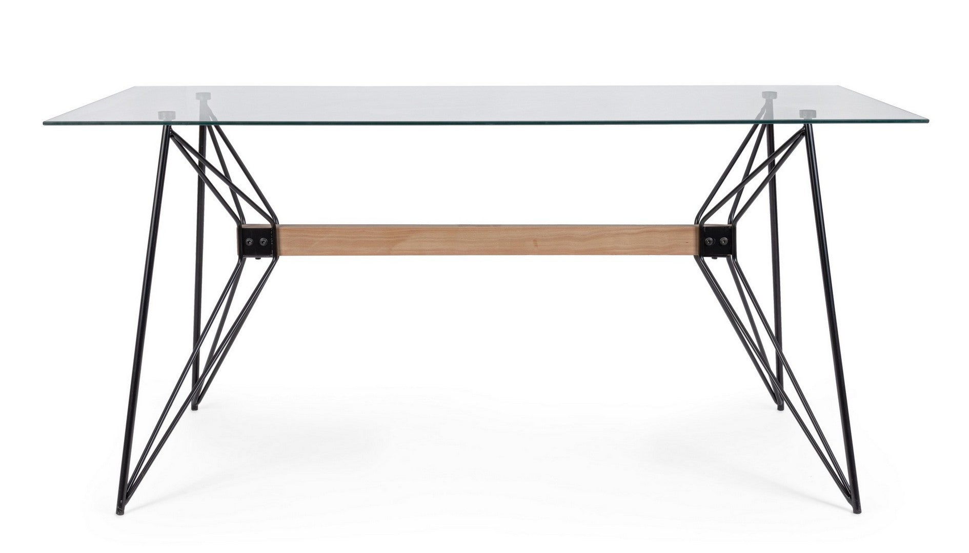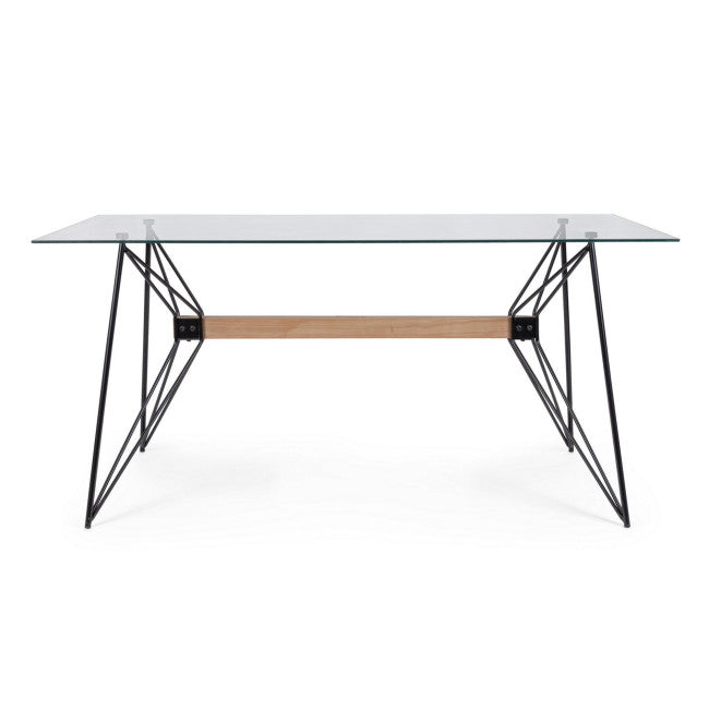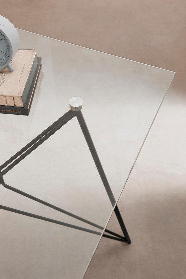 STRUTTURA IN ACCIAIO VERNICIATO A POLVERE EPOSSIDICA. SUPPORTO CENTRALE IN LEGNO DI BETULLA. PIANO IN VETRO TEMPERATO. DA ASSEMBLARE.