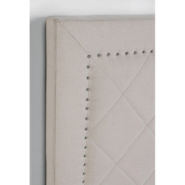 STRUTTURA IN COMPENSATO. RIVESTIMENTO NON SFODERABILE IN POLIESTERE CON APPLICAZIONE DI BORCHIE IN METALLO. IMBOTTITURA IN SCHIUMA POLIURETANICA. PIEDINI IN LEGNO DI PINO.