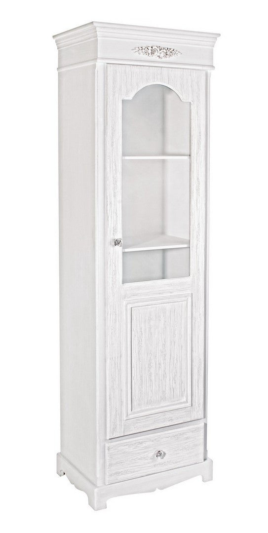 MDF. FINITURA BIANCA OPACA, FRONTALI E PIANI CON EFFETTO DECAPATO. MANIGLIE IN POLIRESINA.